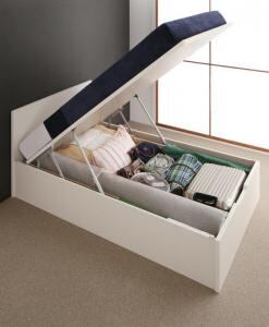 組立設置付 フラットヘッドコンセント付跳ね上げ収納ベッド 薄型抗菌国産ポケットコイルマットレス付き シングル 深さラージ