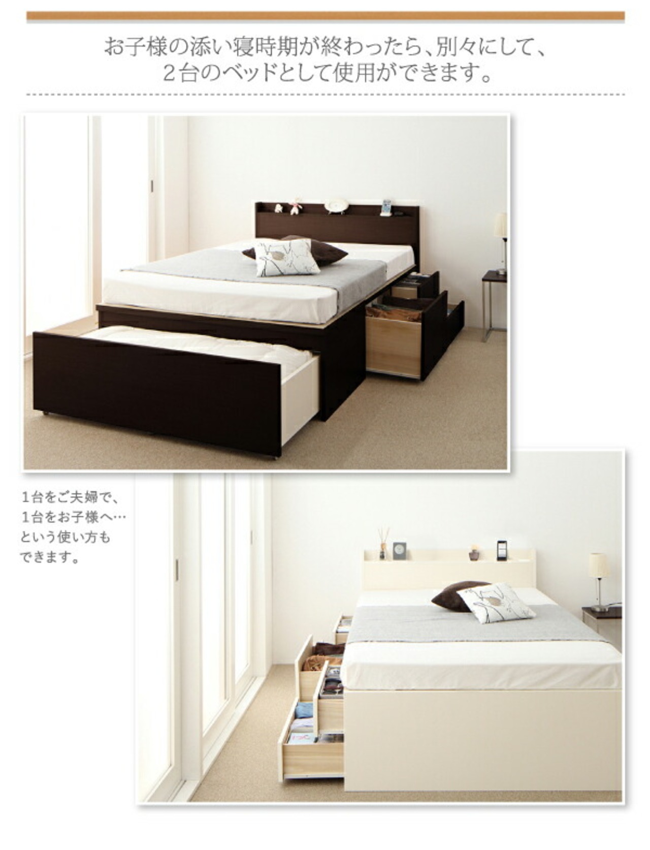 組立設置付 大容量収納ファミリーチェストベッド 薄型スタンダードボンネルコイルマットレス付き A+A ワイドK240(SD×2)