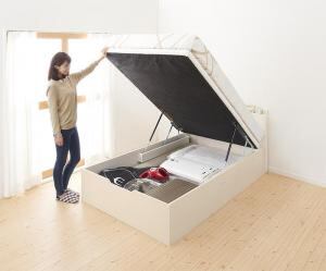組立設置 通気性抜群 棚コンセント付 跳ね上げベッド 薄型プレミアムポケットコイルマットレス付き 縦開き セミシングル 深さグランド