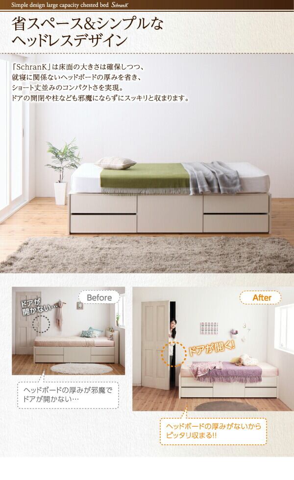 組立設置付き シンプルデザイン_大容量チェストベッド ベッドフレームのみ シングル