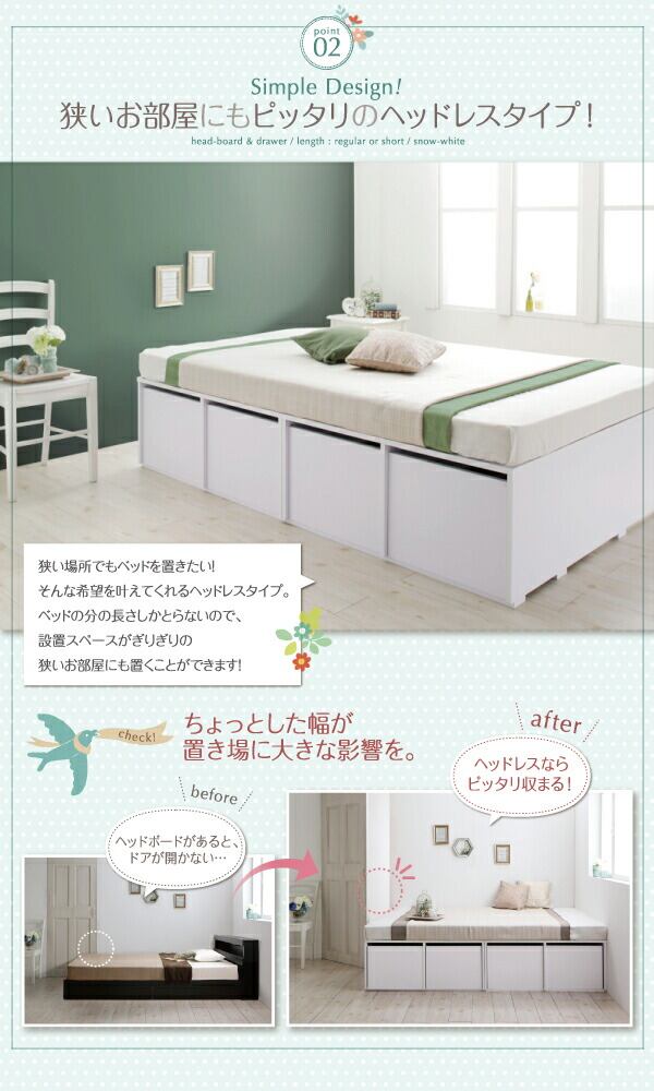 組立設置付き 衣装ケースも入る大容量収納ベッド ベッドフレームのみ 引出し2杯 セミダブル