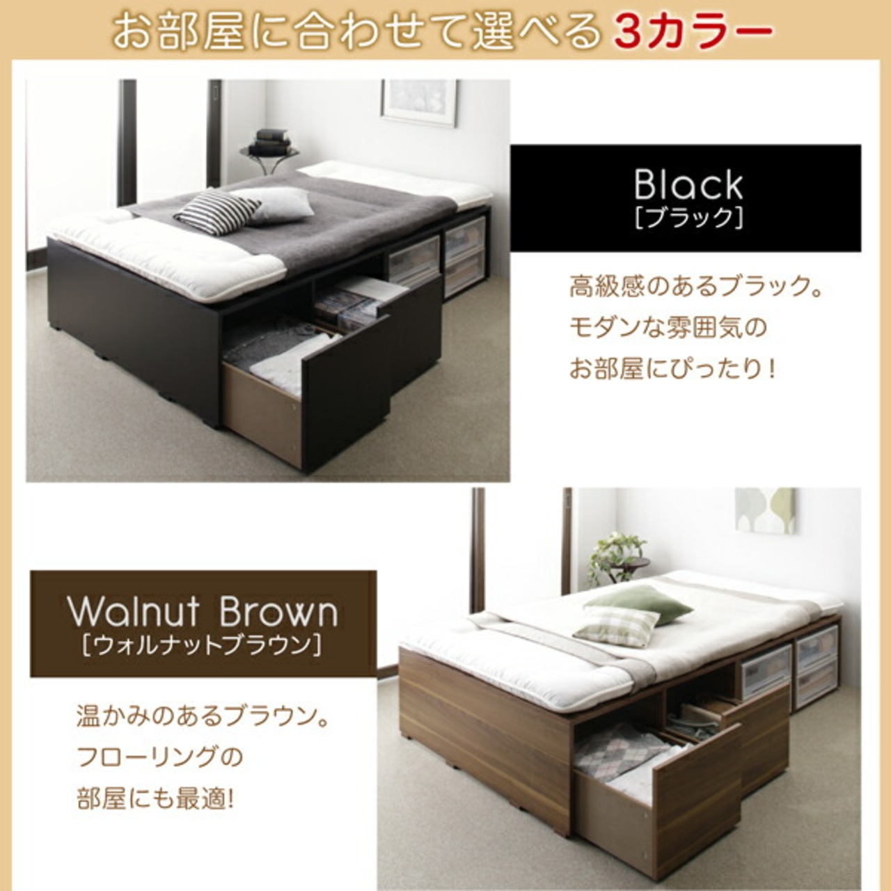 組立設置付き 布団で寝られる大容量収納ベッド ベッドフレームのみ 引き出しなし ロータイプ シングル