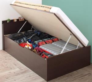 組立設置付 アウトドア収納跳ね上げベッド 薄型抗菌国産ポケットコイルマットレス付き シングル 深さグランド