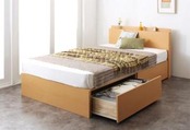組立設置付 長く使える棚・コンセント付国産頑丈2杯収納ベッド スタンダードボンネルコイルマットレス付き セミダブル