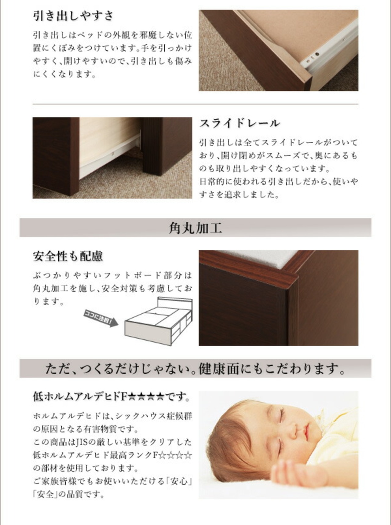 組立設置付 長く使える棚・コンセント付国産頑丈2杯収納ベッド 薄型抗菌国産ポケットコイルマットレス付き シングル