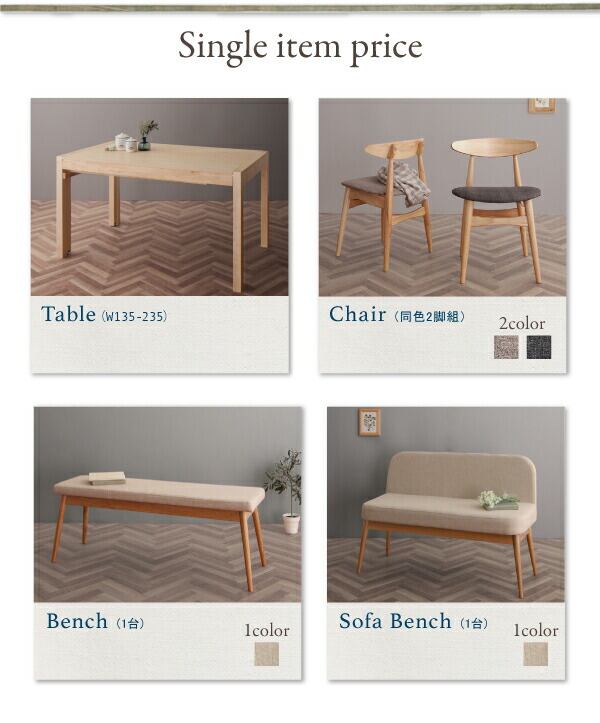ダイニングテーブル単品 W135-235 組立設置付