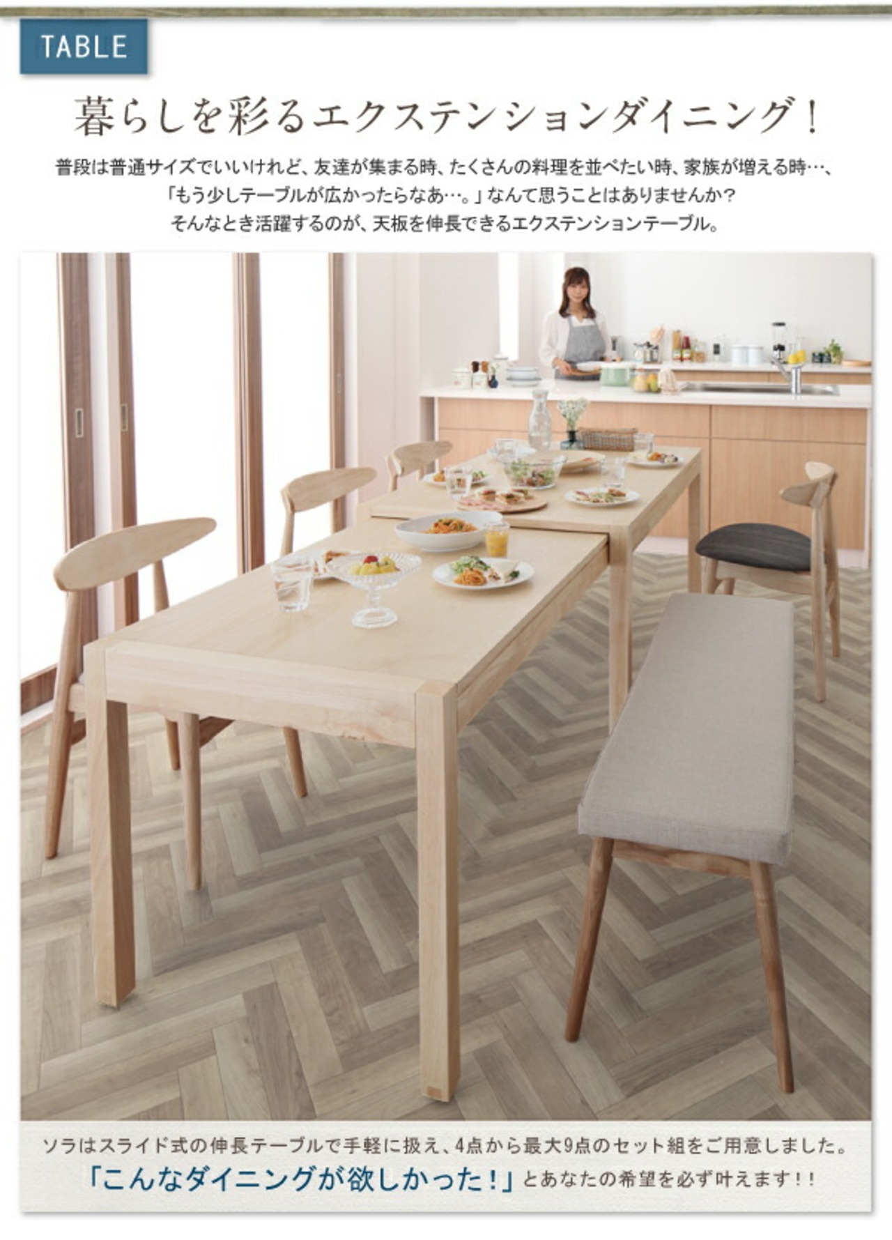 組立設置付き 北欧デザイン スライド伸縮テーブル ダイニングセット 7点セット(テーブル+チェア6脚) W135-235