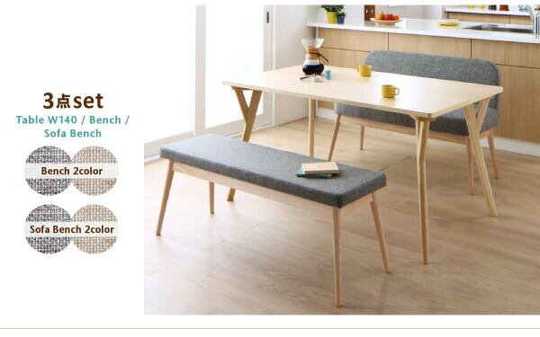 組立設置付き やさしい色合いの北欧スタイル ソファベンチ ダイニング ダイニングテーブル W140