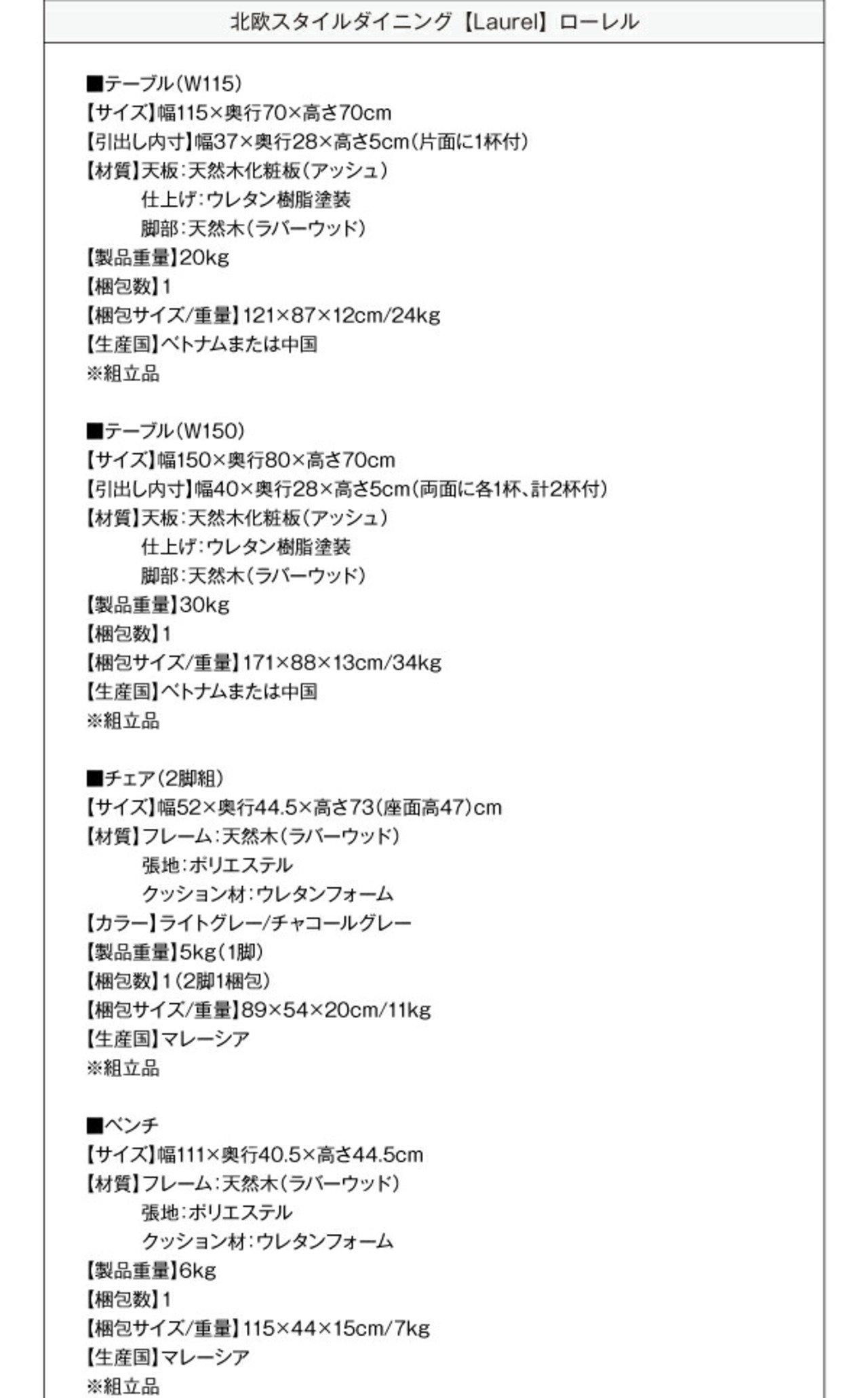 ●ベッド、リビングダイニング、収納家具については【完成品】【組立設置付き】と記載が無い場合はお客様にて組立が必要になります。