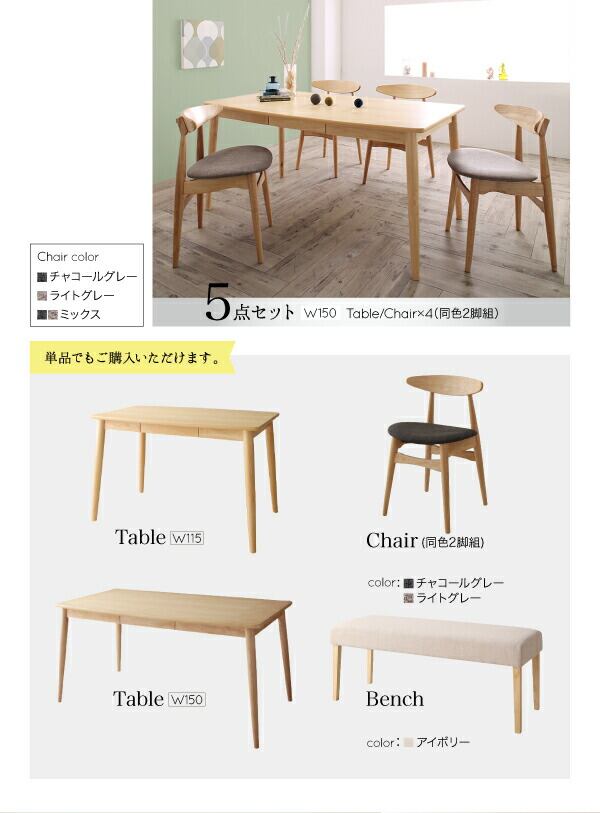 組立設置付き 北欧スタイル ダイニング 5点セット(テーブル+チェア4脚) W115