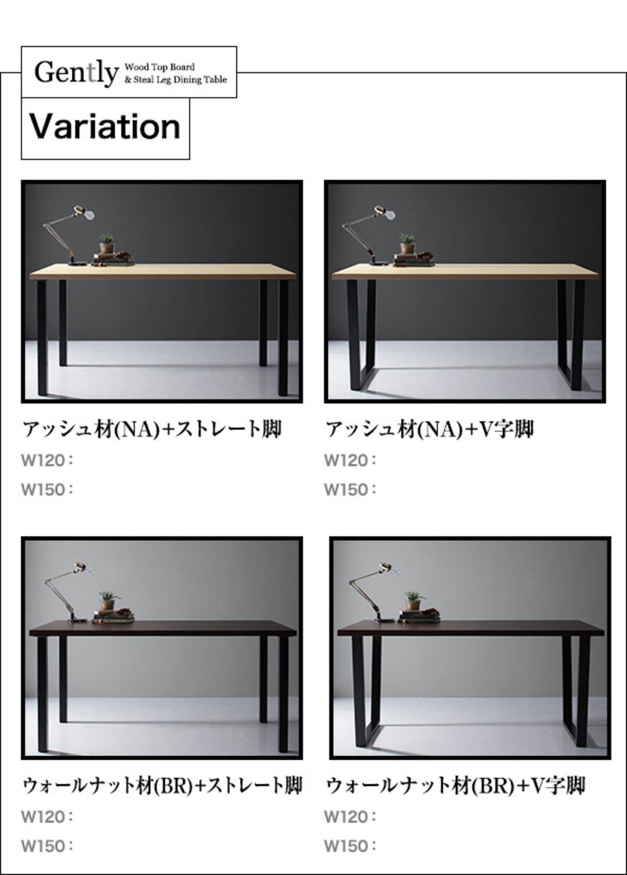 組立設置付き 天然木天板 スチール脚 モダンデザインテーブル ブラウン V字脚 W150