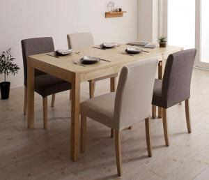 組立設置付き 無段階に広がる スライド伸縮テーブル ダイニングセット 5点セット(テーブル+チェア4脚) シンプルタイプ W120-200