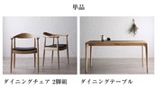 組立設置付き 天然木オーク無垢材 北欧デザイナーズ ダイニングセット 3点セット(テーブル+チェア2脚) W150
