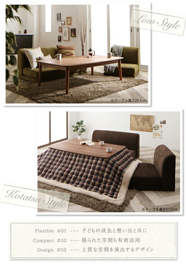 組立設置付き ずっと使えて快適。こたつもソファも高さ調節できるソファダイニングセット ダイニングこたつテーブル W135