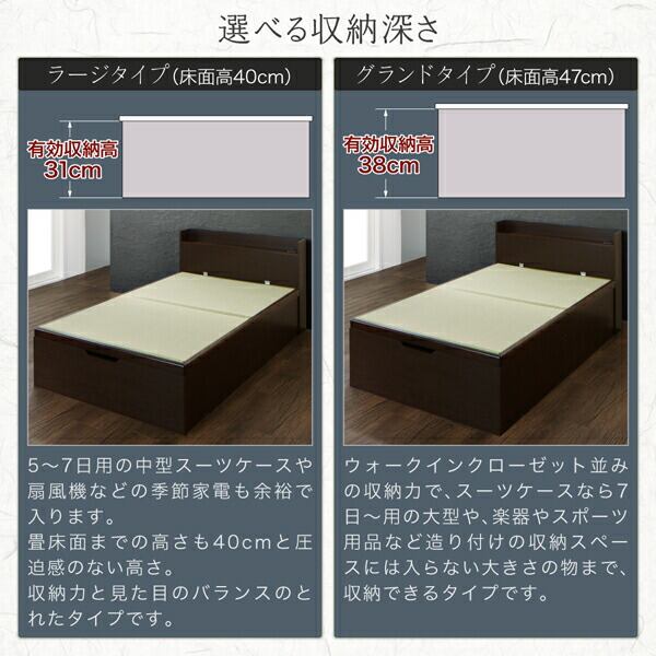 組立設置付 シンプルモダンデザイン大容量収納日本製棚付きガス圧式跳ね上げ畳ベッド 国産畳 セミダブル 深さラージ