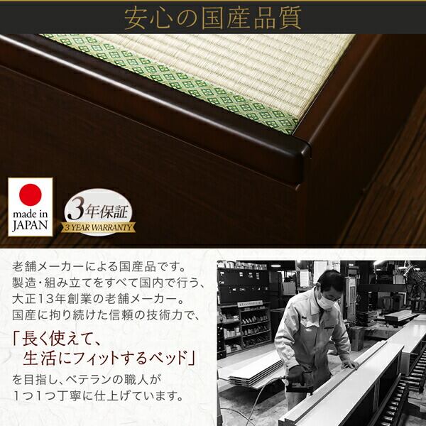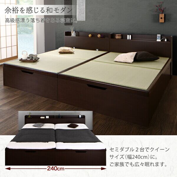 組立設置付 シンプルモダンデザイン大容量収納日本製棚付きガス圧式跳ね上げ畳ベッド 国産畳 セミダブル 深さグランド