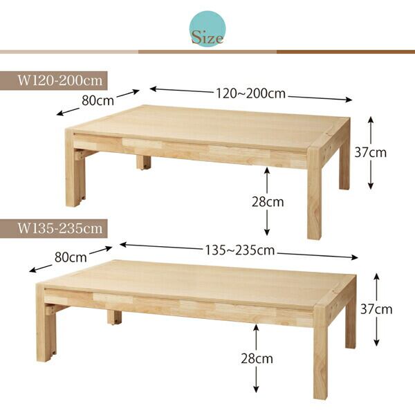 組立設置付き スライド伸縮 エクステンションリビングテーブル W135-235