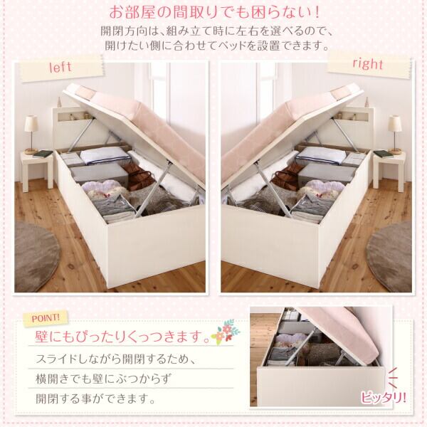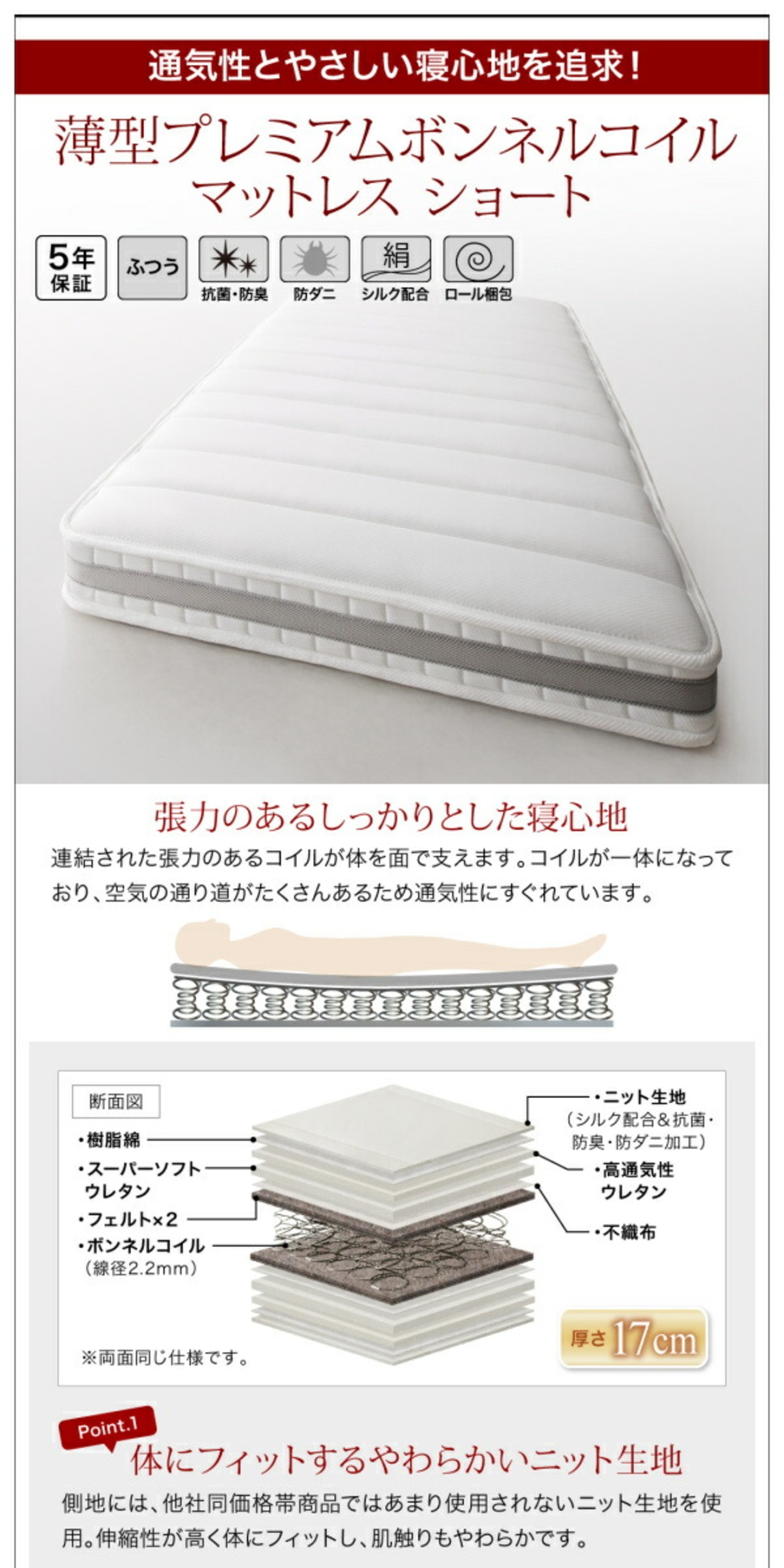 組立設置 小さな部屋に合うショート丈収納ベッド ベッドフレームのみ セミシングル ショート丈 深さグランド