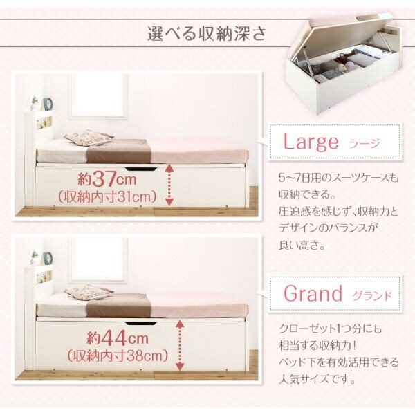 組立設置 小さな部屋に合うショート丈収納ベッド 薄型抗菌国産ポケットコイルマットレス付き セミシングル ショート丈 深さグランド