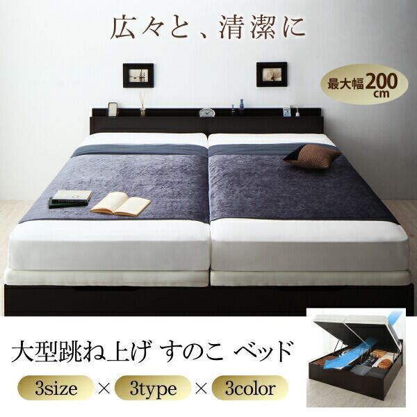 組立設置付 大型跳ね上げすのこベッド 薄型スタンダードボンネルコイルマットレス付き 縦開き ワイドK200 ラージ