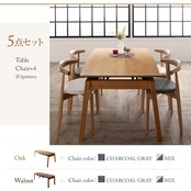 組立設置付き オーク材・ウォールナット材 北欧伸縮式ダイニング 6点セット(テーブル+チェア4脚+ベンチ1脚) W140-240