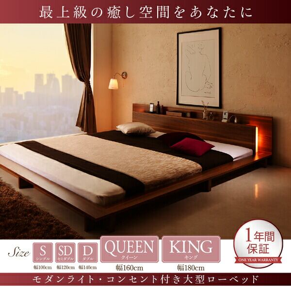 組立設置付き モダンライト・コンセント付き大型ローベッド スタンダードボンネルコイルマットレス付き セミダブル