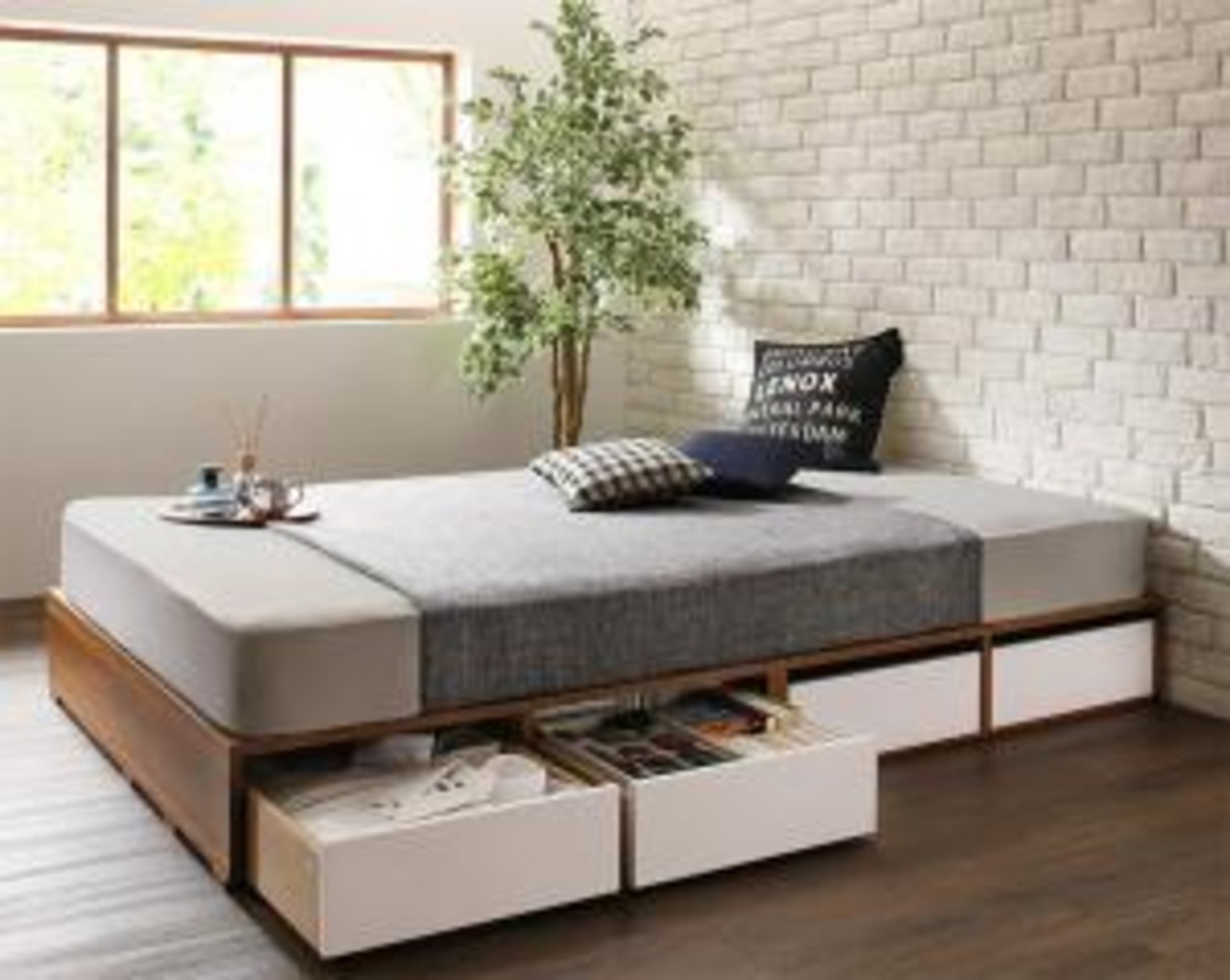 プレミアムポケットコイルマットレス付き 引き出し4杯 シングル 組立設置付