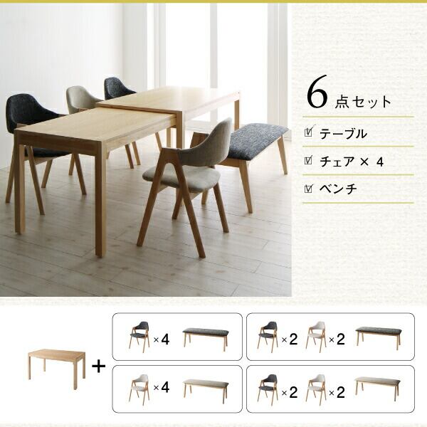 ダイニング点セット(テーブル+チェア2脚+ベンチ1脚) W135-235 組立設置付