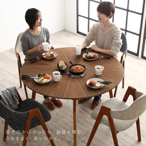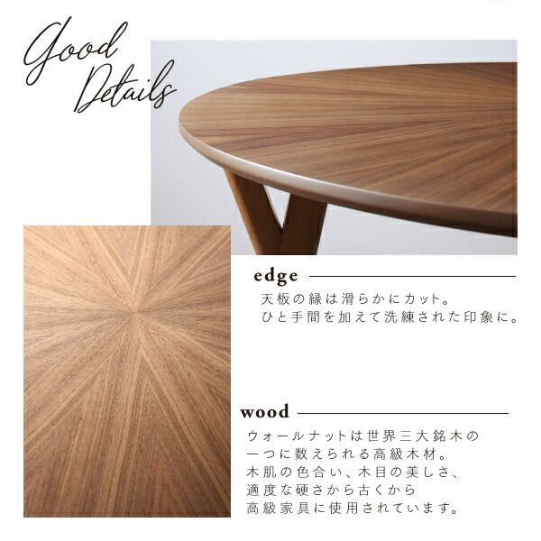 組立設置付き ウォールナットの光線張り北欧デザイン丸テーブルダイニング ダイニングテーブル 直径120