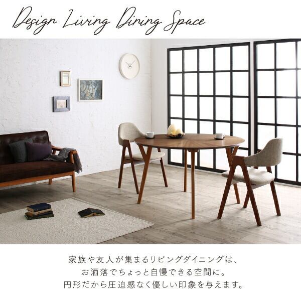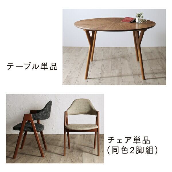 組立設置付き ウォールナットの光線張り北欧デザイン丸テーブルダイニング 5点セット(テーブル+チェア4脚) 直径120