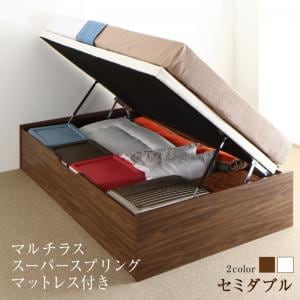 組立設置付 通気性抜群 跳ね上げすのこベッド マルチラススーパースプリングマットレス付き 横開き セミダブル 深さラージ
