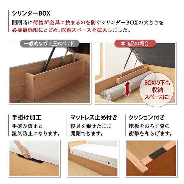組立設置付 通気性抜群 すのこ構造 棚コンセント付 跳ね上げベッド ベッドフレームのみ セミダブル 深さラージ