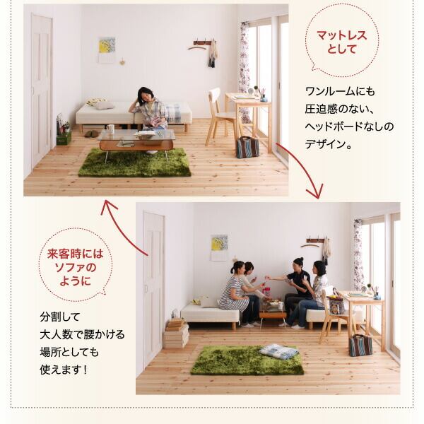組立設置付き 専用 敷きパッドが選べる 移動・搬入・掃除がらくらく 分割式脚付きマットレスベッド マットレスベッド ポケットコイルマットレス 敷きパッドなし キング(SS+S)