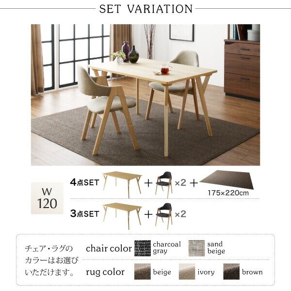 組立設置付き 北欧デザインダイニング 5点セット(テーブル+チェア4脚) W170