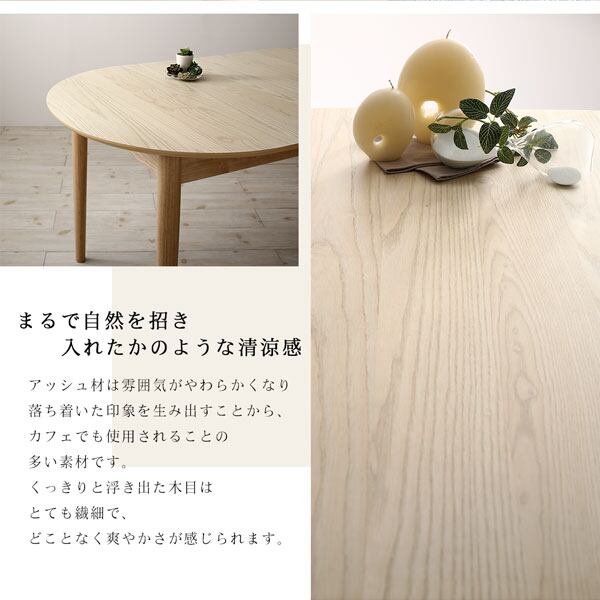 組立設置付き 天然木アッシュ材 伸縮式オーバルダイニング 7点セット(テーブル+チェア6脚) W160-210
