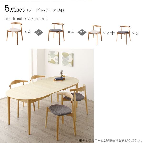 組立設置付き 天然木アッシュ材 伸縮式オーバルダイニング ダイニングテーブル W160-210