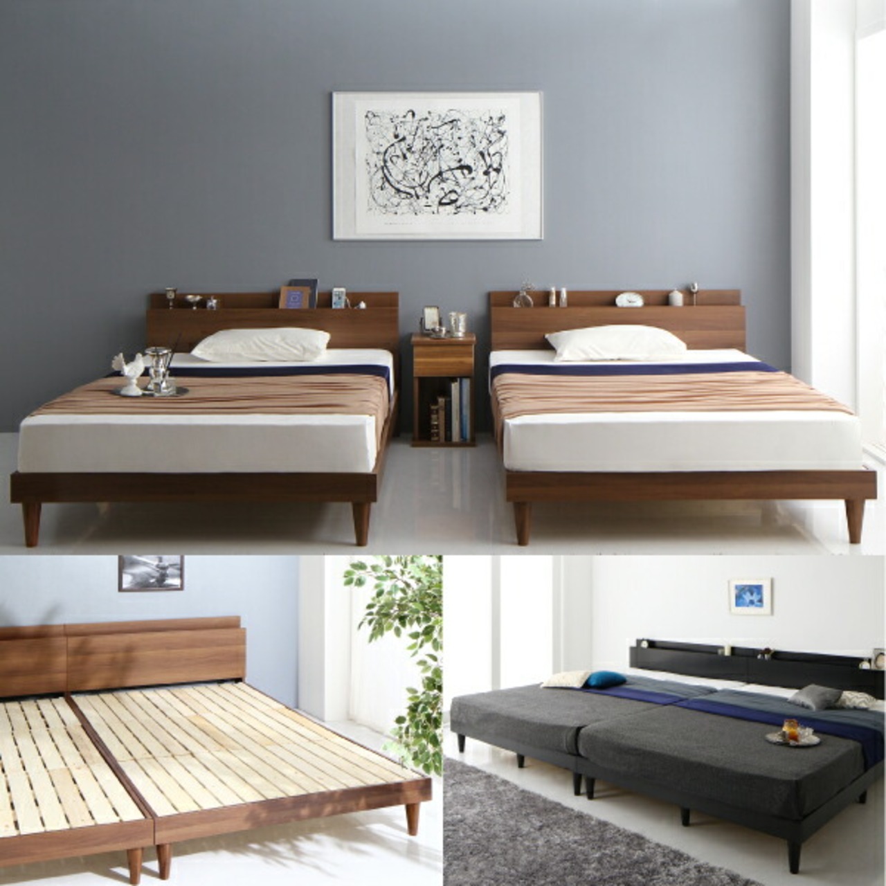 組立設置付き 棚・コンセント付きツイン連結すのこベッド プレミアムボンネルコイルマットレス付き ワイドK200