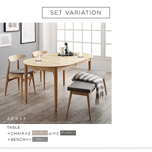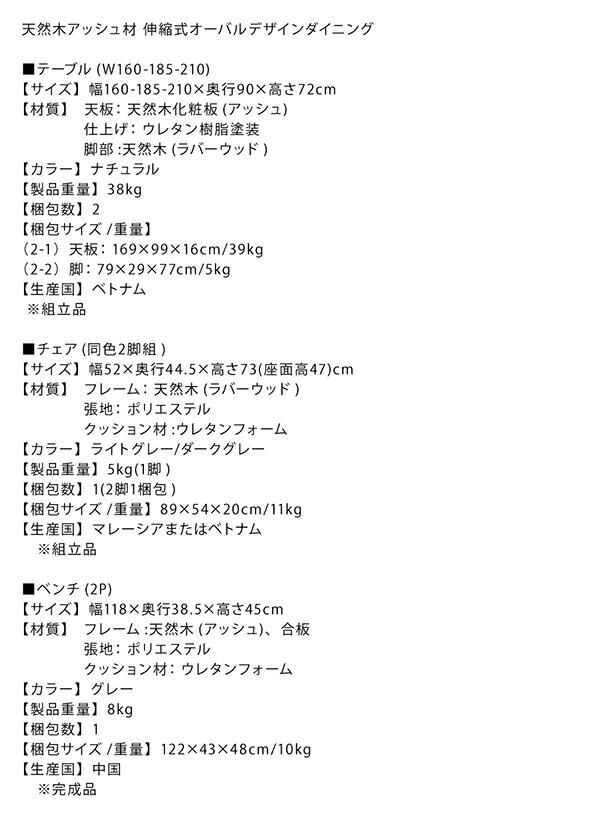 組立設置付き 天然木アッシュ材 伸縮式オーバルデザインダイニング ダイニングテーブル W160-210