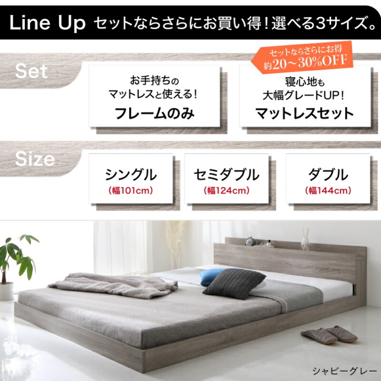 組立設置付き ベッド 棚コンセント付き ロータイプ ベッドフレームのみ ダブル