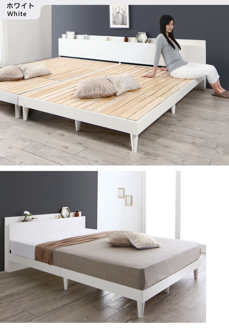 組立設置付き 棚・コンセント付きデザインすのこベッド プレミアムポケットコイルマットレス付き シングル