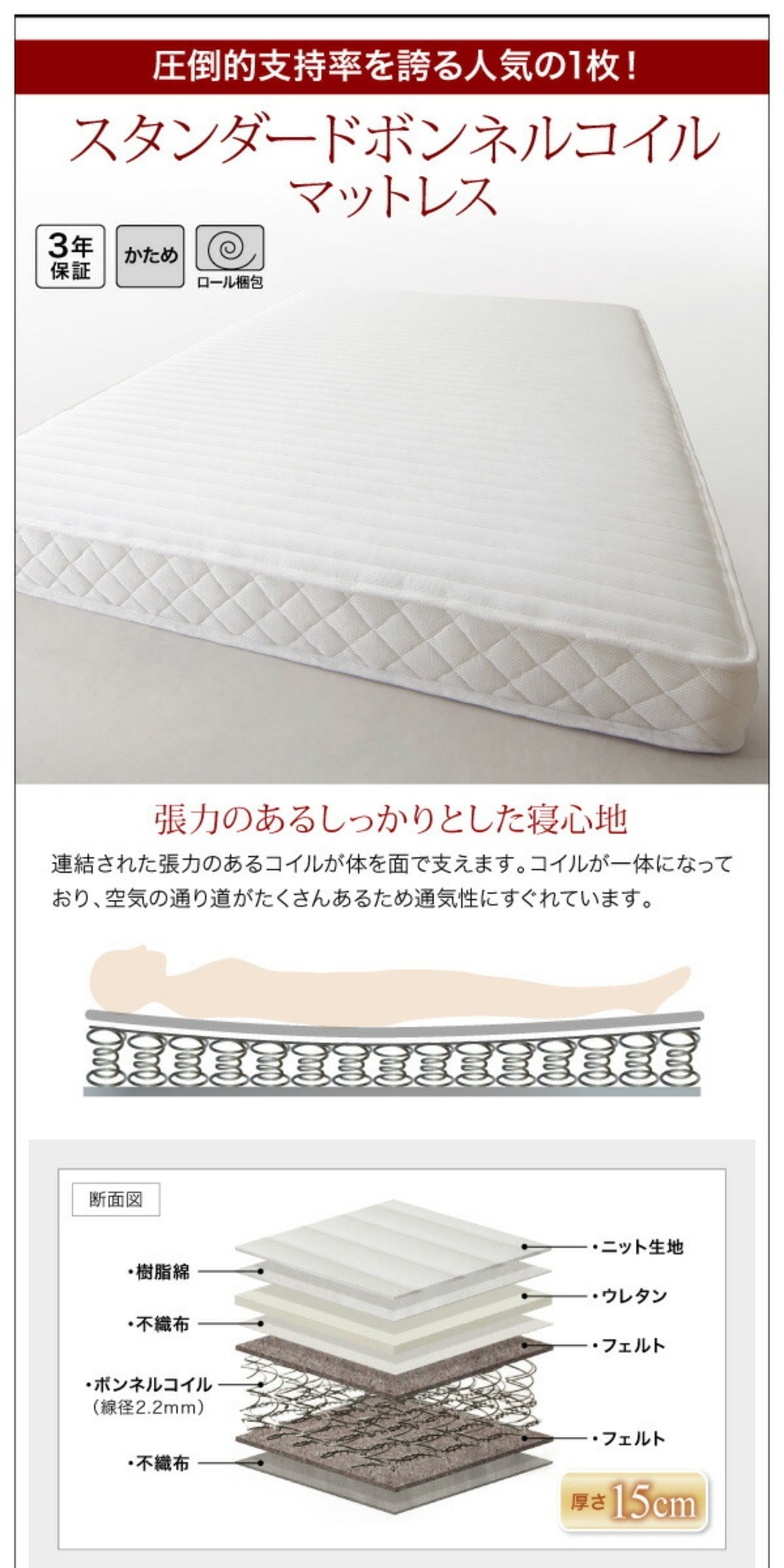 薄型抗菌国産ポケットコイルマットレス付き シングル 組立設置付
