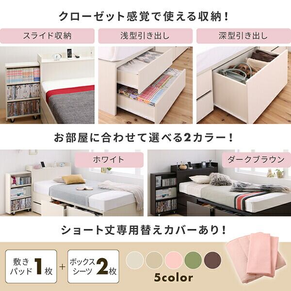 組立設置付 スライド収納付き コンパクトチェストベッド 薄型抗菌国産ポケットコイルマットレス付き シングル ショート丈