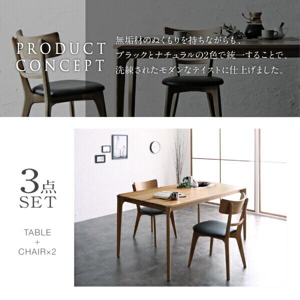 組立設置付き 天然木オーク無垢材 モダンデザインダイニング 5点セット(テーブル+チェア4脚) W150
