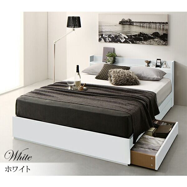 組立設置付き 清潔に眠れる棚・コンセント付きすのこ収納ベッド プレミアムポケットコイルマットレス付き ダブル
