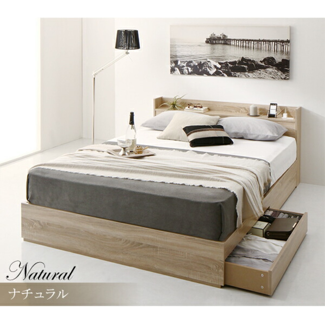 組立設置付き 清潔に眠れる棚・コンセント付きすのこ収納ベッド 国産カバーポケットコイルマットレス付き シングル