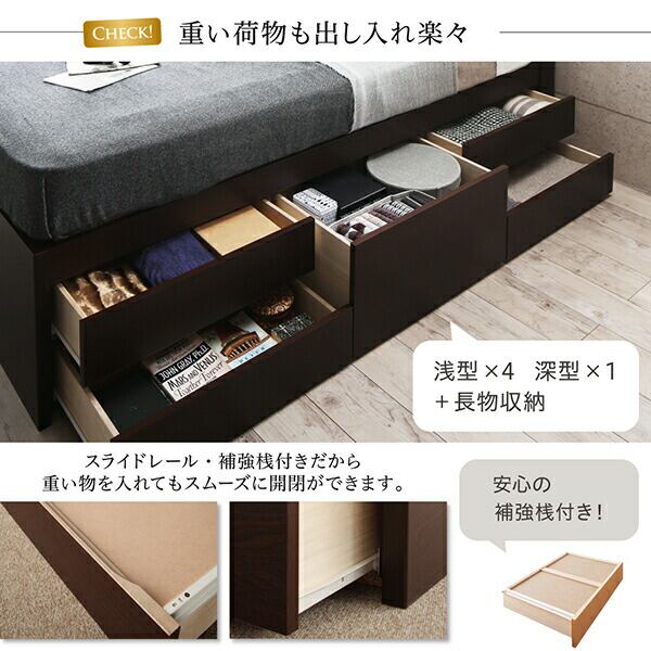 組立設置付 国産 多機能頑丈すのこチェストベッド 薄型スタンダードボンネルコイルマットレス付き セミダブル