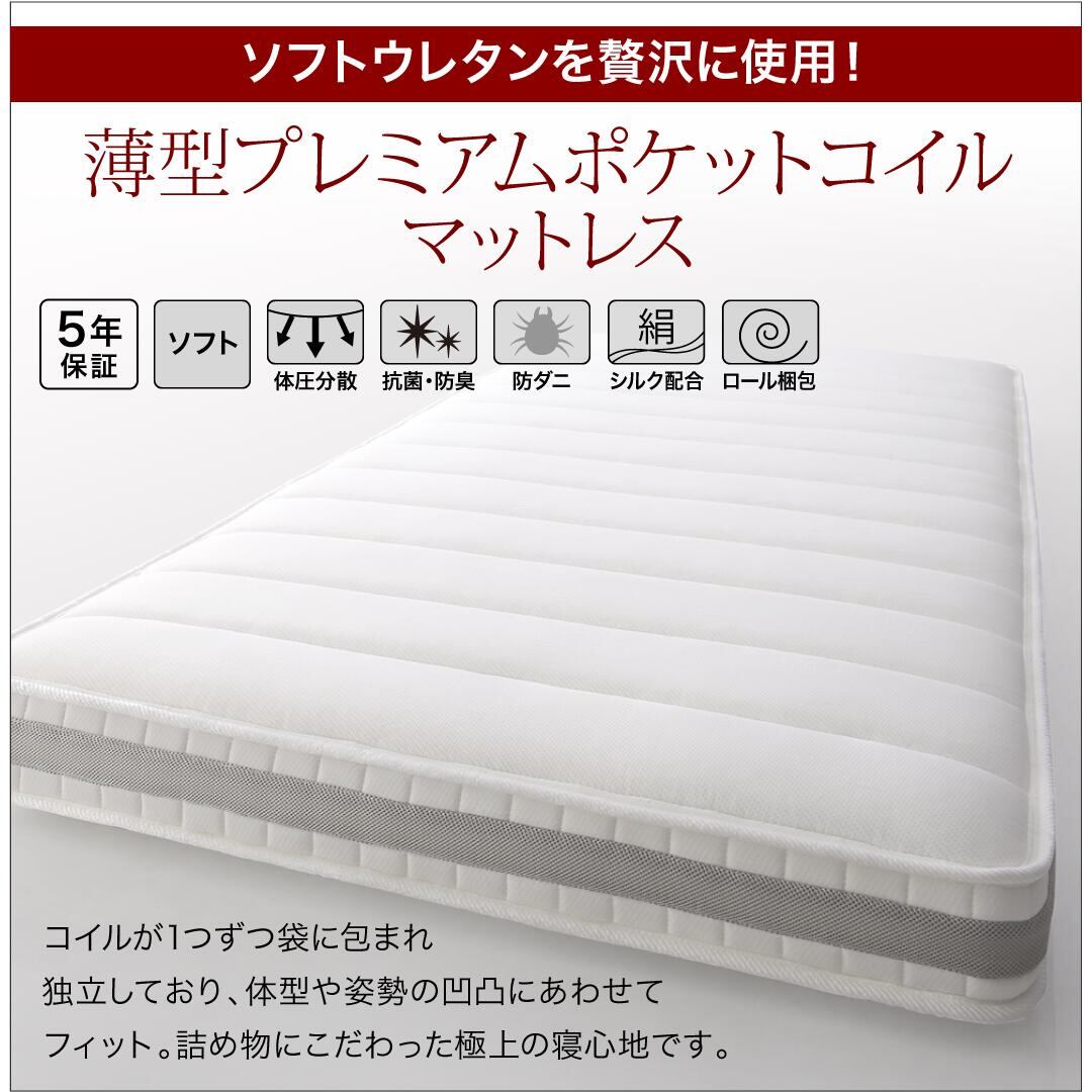 薄型プレミアムポケットコイルマットレス付き ロータイプ 引き出しなし シングル 組立設置付